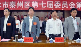 會議推選出張明泰、文月平、何東、宋丕林、舒健、馬有魁、陳蓉華、趙春明、裴浩仁、胡秀玉、許亞軍為天水市秦州區(qū)第七屆人民代表大會第二次會議主席團(tuán)常務(wù)主席。