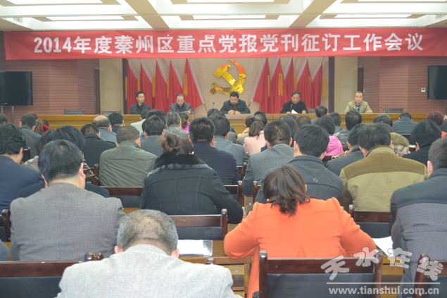 (秦州區(qū)外宣辦 張永宏)11月21日,秦州區(qū)召開(kāi)2014年重點(diǎn)黨報(bào)黨刊征訂工作會(huì)。據(jù)了解,為了充分發(fā)揮重點(diǎn)黨報(bào)黨刊引導(dǎo)輿論的主力軍、主渠道和主陣地作用,積極有效運(yùn)用黨報(bào)黨刊宣傳黨的主張、指導(dǎo)實(shí)踐、推動(dòng)工作,秦州區(qū)多措并舉,全面落實(shí)黨報(bào)黨刊發(fā)行工作。
