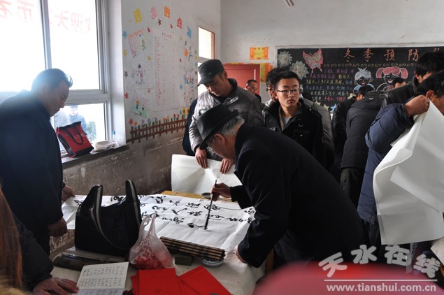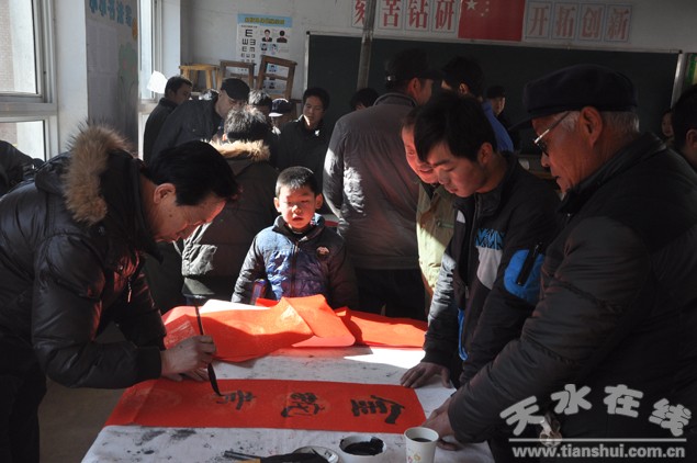。ㄇ刂輩^(qū)外宣辦)1月13日,秦州區(qū)政協(xié)組織市老年書畫研究會組織會員20多人來到秦州區(qū)藉口鎮(zhèn)開展送“文化下鄉(xiāng)”活動,為廣大農(nóng)民朋友贈送精美的書畫作品和火紅的迎新春聯(lián)。區(qū)政協(xié)主席宋丕林參加活動。