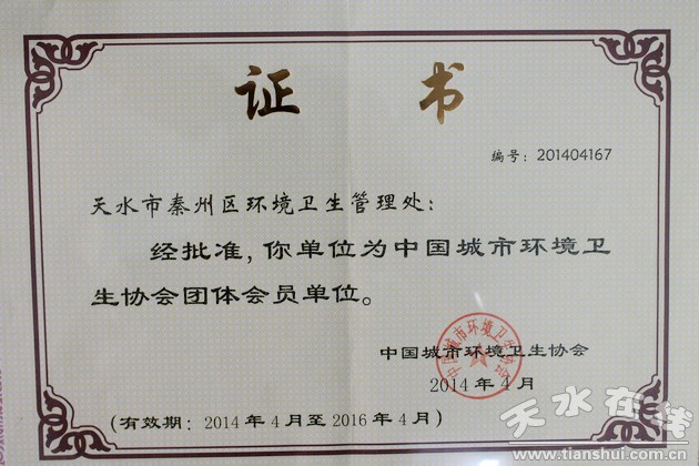 近日,經(jīng)中國城市環(huán)境衛(wèi)生協(xié)會(huì)研究,同意接納秦州區(qū)環(huán)境衛(wèi)生管理處為中國城市環(huán)境衛(wèi)生協(xié)會(huì)注冊團(tuán)體會(huì)員。