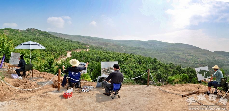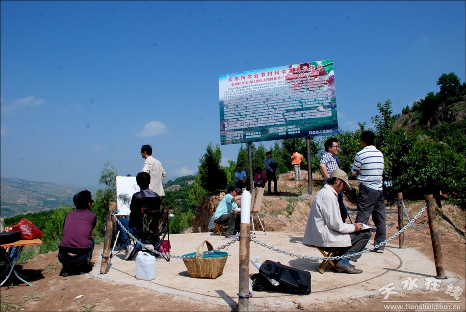 (資料圖片:天水在線組織的書畫名家走進煙鋪大櫻桃基地采風活動)