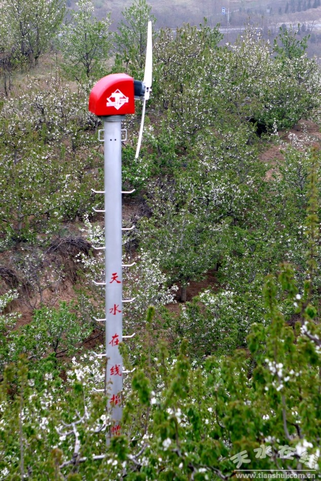 (天水在線向煙鋪大櫻桃基地捐贈的三臺防霜機堅守崗位。)