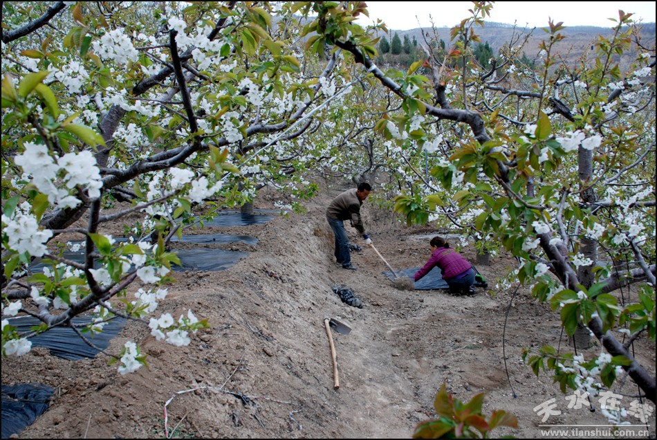 日前,秦州區(qū)玉泉鎮(zhèn)煙鋪村村民正在櫻桃園里整理滴灌管道。自去年以來,秦州區(qū)農(nóng)業(yè)部門聯(lián)合市水務部門在秦州區(qū)北山羅峪溝萬畝大櫻桃基地鋪設滴灌管網(wǎng),有效緩解了煙鋪、劉家莊、馬蘭、鹽池等6個行政村農(nóng)戶灌溉難的問題。