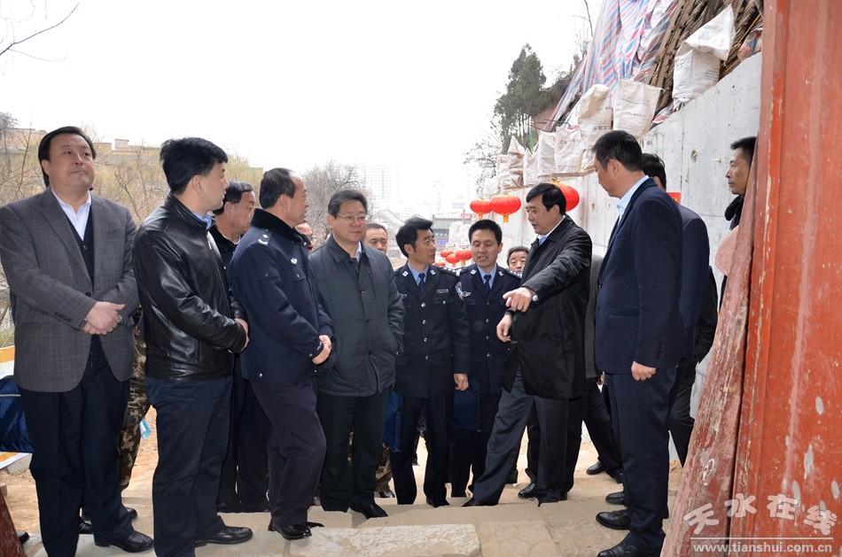 2月26日上午,天水市委常委、政法委書(shū)記趙衛(wèi)東、副市長(zhǎng)張建杰、市政府黨組成員、公安局長(zhǎng)黃金奎帶領(lǐng)市公安局、市文化旅游局、市安監(jiān)局、市公安消防支隊(duì)等部門(mén)負(fù)責(zé)人及秦州區(qū)黨委政府負(fù)責(zé)人就玉泉觀(guān)文化廟會(huì)組織籌備工作進(jìn)行專(zhuān)項(xiàng)督查。