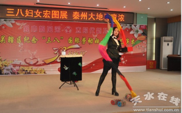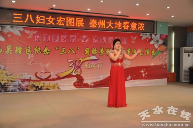 為慶!叭恕眿D女節(jié)106周年,3月4日下午,由西關(guān)街道社區(qū)、學(xué)校、醫(yī)院、企業(yè)等轄區(qū)十余家單位聯(lián)合舉辦的慶“三八”文藝演出在秦州區(qū)地稅局七樓會(huì)議室隆重舉行。