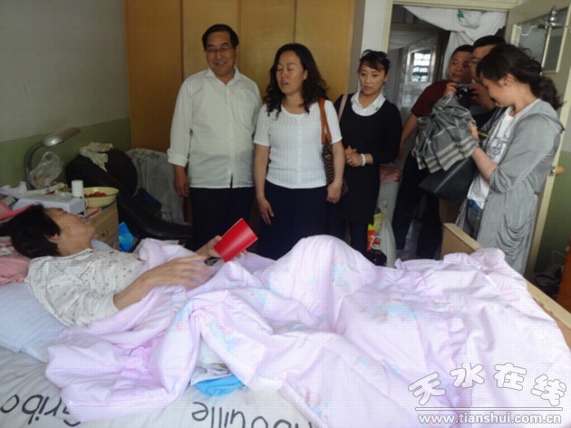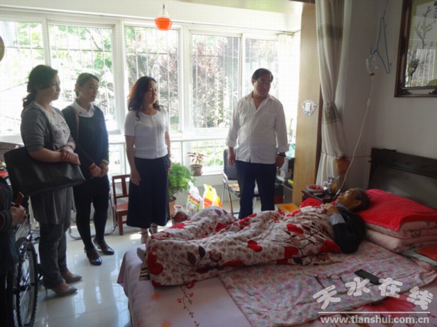 接著又來到現(xiàn)年72歲的馬國順黨員家中,馬國順患有食道癌,現(xiàn)已重病臥床,生活困難,他見到大家送來溫暖,一手握住街道黨工委書記的手感動的說道:“感謝黨組織對我關懷,我身體好的時候沒有給黨做多大的貢獻,現(xiàn)在病了,黨組織沒有忘記我,給我溫暖和關懷,使我備受鼓舞,讓我有了戰(zhàn)勝病魔的勇氣,給了我精神上的支持!