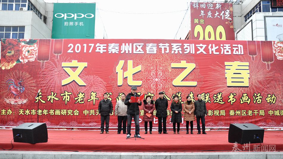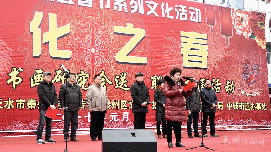 這場名為“文化之春”的送書畫送春聯(lián)活動由天水市老年書畫研究會、秦州區(qū)委宣傳部、區(qū)文廣局、中城街道辦事處主辦。旨在進一步繁榮節(jié)日期間廣大群眾的精神文化生活,營造歡樂祥和的節(jié)日氛圍,鼓舞全區(qū)干部群眾以更加飽滿的熱情投身“七彩之區(qū)”建設(shè)。