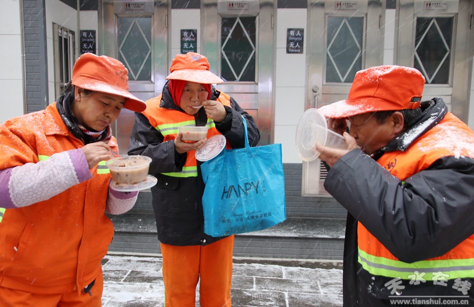當(dāng)天,共將500余份熱騰騰的臘八粥,送到了進(jìn)行除雪作業(yè)的環(huán)衛(wèi)工人手中,感謝他們?yōu)槊阑鞘协h(huán)境付出的辛勤汗水,同時(shí)呼吁更多的愛心企業(yè)關(guān)心關(guān)愛環(huán)衛(wèi)工人。