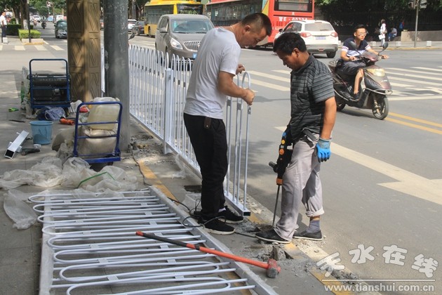 安裝人行道隔離護欄,是實現(xiàn)人車分離,維護街區(qū)秩序,保障車輛和行人安全出行的有效舉措,更是創(chuàng)建全國文明城市的必然要求。自7月25日開始,秦州區(qū)執(zhí)法局按照區(qū)委、區(qū)政府指示和主要領導批示,在民主路、建設路人行道兩側實施了隔離護欄安裝工程。區(qū)主要領導數(shù)次深入實地調查研究,現(xiàn)場查看工程進度,為工程協(xié)調解決困難和問題。執(zhí)法局按照網(wǎng)格化管理,在路口、站臺、商場等車流量大、人員密集的區(qū)域“定崗、定人、定責”,加強執(zhí)法巡查力度,嚴查亂停亂放和占道經(jīng)營等現(xiàn)象,全力維護施工現(xiàn)場秩序,保障了工程順利完工。