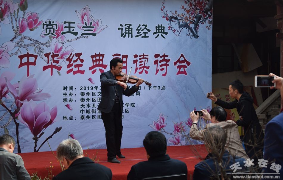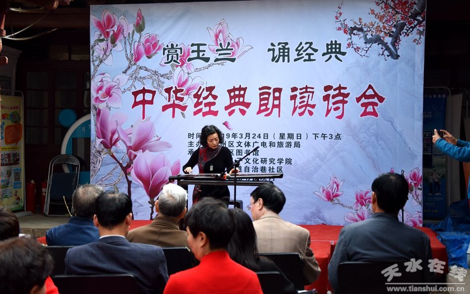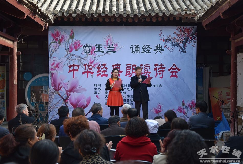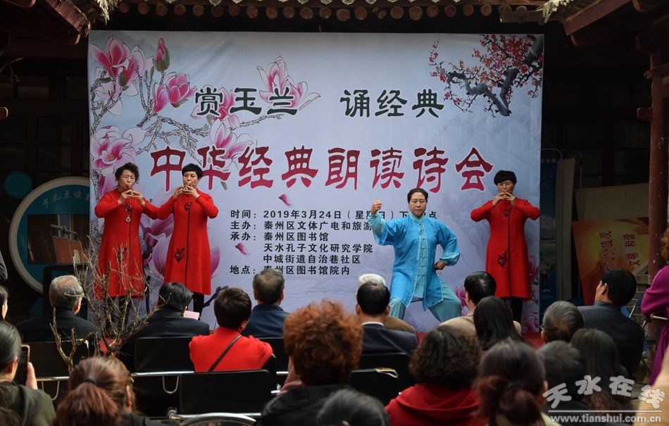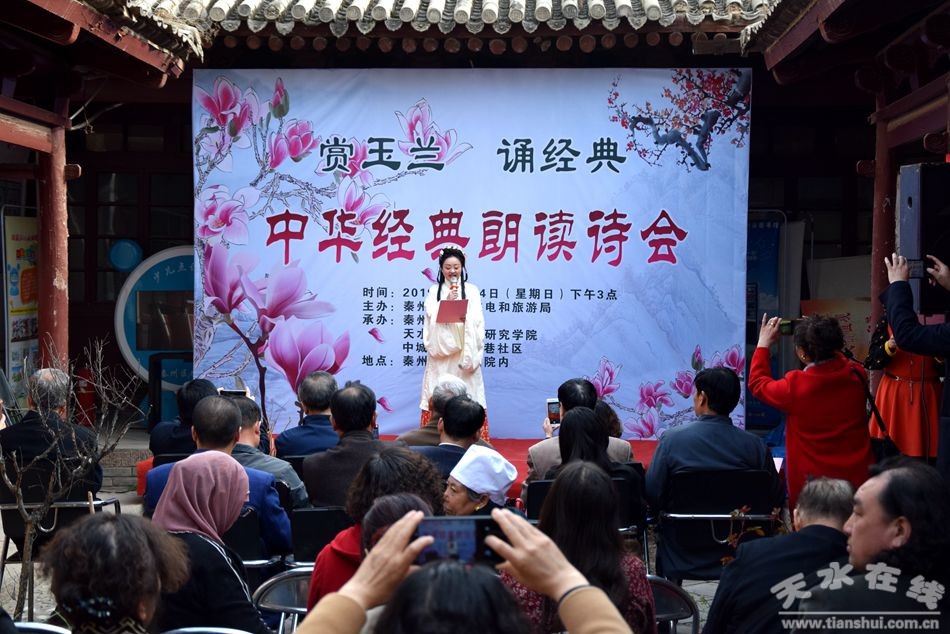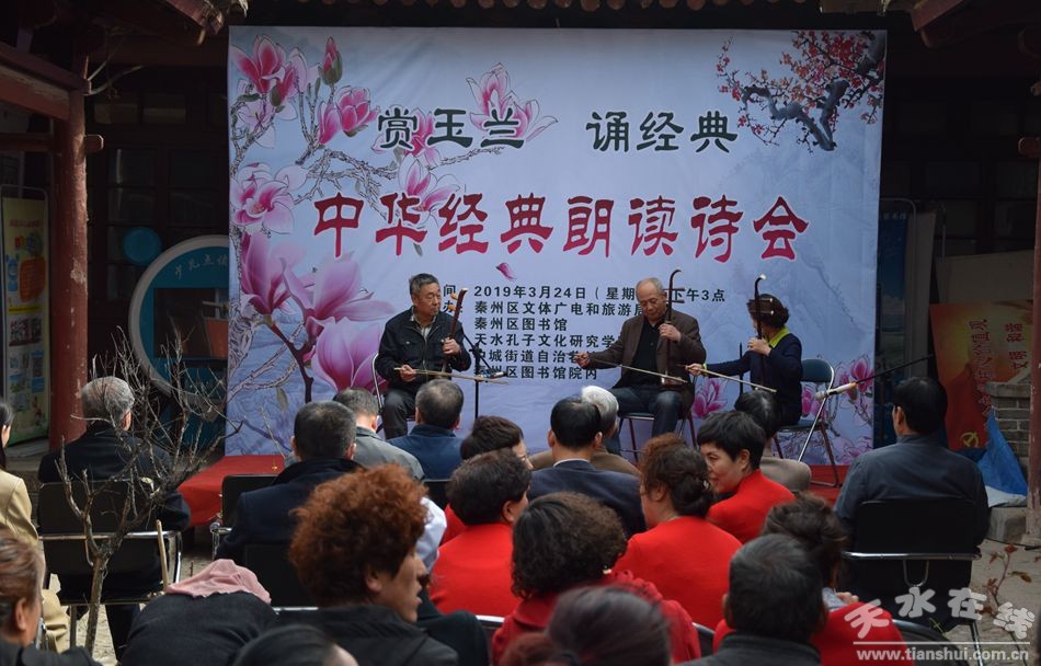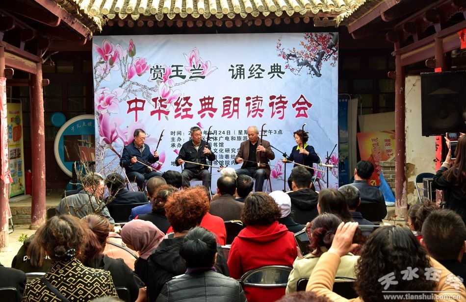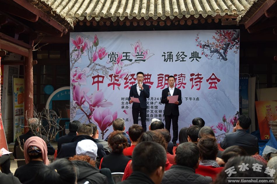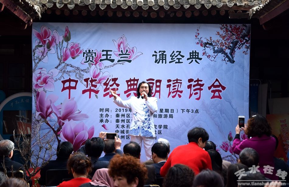 3月24日下午,由秦州區(qū)文體廣電和旅游局、天水孔子文化研究學院、區(qū)圖書館聯(lián)合主辦的“賞玉蘭、誦經(jīng)典”第二屆中華經(jīng)典朗讀詩會在“玉蘭古巷”舉行。