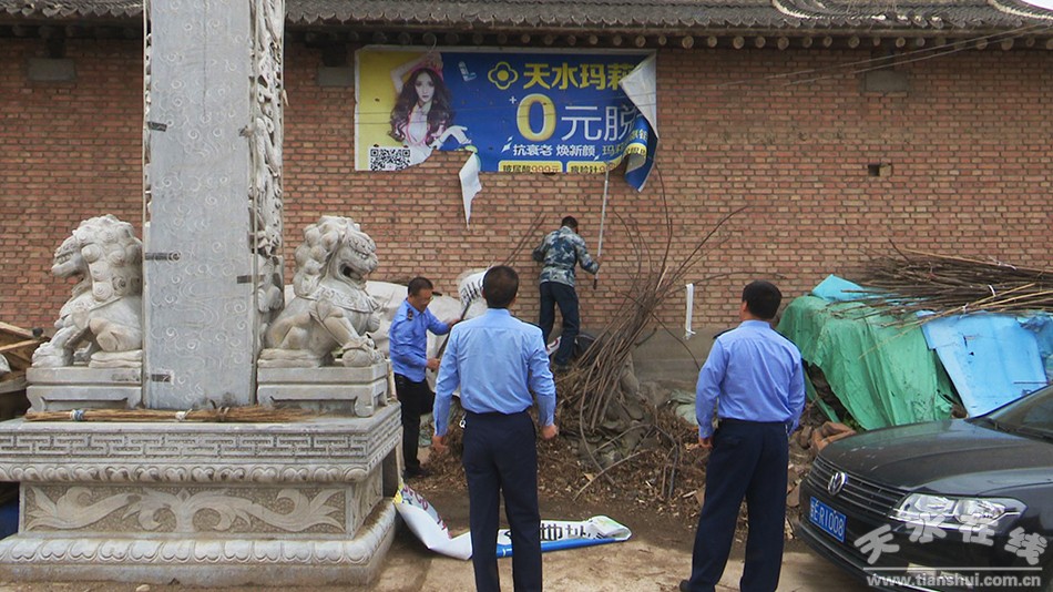 4月9號,秦州區(qū)市場監(jiān)督管理局的工作人員來到皂郊鎮(zhèn)和娘娘壩鎮(zhèn),對不規(guī)范醫(yī)療廣告進(jìn)行了強(qiáng)制拆除,并對一些墻上的小廣告進(jìn)行了涂白處理。當(dāng)天,共排查清理不規(guī)范醫(yī)療廣告40條、墻上小廣告10條。