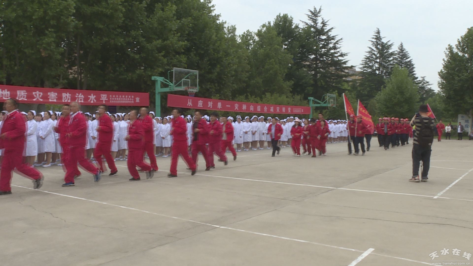 本次演練的重點內(nèi)容包括信息報送、響應(yīng)啟動、應(yīng)急處置、解除響應(yīng)四個方面。演練模擬背景為:近期,天水市已連續(xù)多次出現(xiàn)大范圍強降雨天氣,天水市衛(wèi)生學(xué)校后山隱患點發(fā)現(xiàn)滑坡裂縫,隨時有可能發(fā)生大范圍的滑塌,險情嚴(yán)重威脅天水市衛(wèi)生學(xué)校師生和王家磨社區(qū)居民約2000余人的生命財產(chǎn)安全。必須迅速有序的組織受威脅群眾安全撤離,對受傷群眾進(jìn)行救治,對地質(zhì)災(zāi)害隱患點進(jìn)行排危加固。