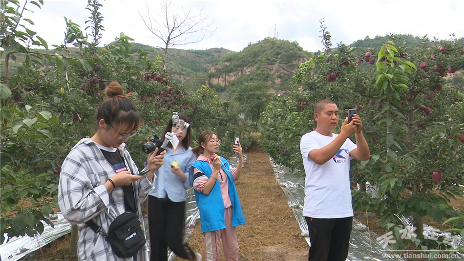 活動(dòng)現(xiàn)場,來自我市數(shù)十家本地自媒體從業(yè)者參觀了網(wǎng)絡(luò)農(nóng)產(chǎn)品銷售達(dá)人王龍的果品基地,深入了解他的致富故事,并通過直播助力果品銷售!稗r(nóng)產(chǎn)品通過直播的方式,讓全國各地的一些粉絲朋友能看到、能了解到,我們甘肅天水是一個(gè)地里位置或者說氣候條件特別適合種水果的地方!碧╂(zhèn)自媒體電商創(chuàng)業(yè)青年王龍表示。