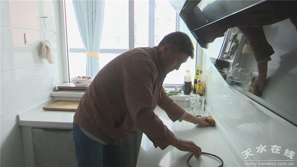 石具珍是藉口鎮(zhèn)何趙村的貧困戶,剛剛搬入新房的他,正在打掃新家的衛(wèi)生。石具珍告訴記者,以前住在山溝里,每天去市里打工,在路上就要耗大半天時間,有時遇上雨雪天,出行更是不便,搬進(jìn)新家之后,去市區(qū)只需要半個小時,方便多了。