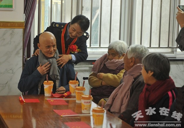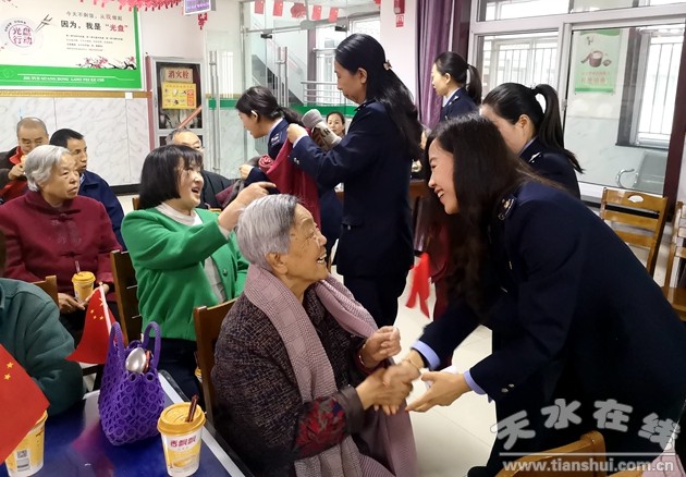 “在這個(gè)深秋的下午,能去護(hù)理院給每位老人系上一條圍巾、遞上一杯奶茶、送上一個(gè)暖手寶,感覺(jué)非常高興,老人們揮動(dòng)小紅旗齊聲歌唱祖國(guó)的場(chǎng)景,讓同行人員既感親切又倍覺(jué)感動(dòng)。置身那一幕,發(fā)自內(nèi)心的尊老敬老之意瞬間由然而生。”秦州區(qū)稅務(wù)局婦委會(huì)主任剡紅紅接受記者采訪時(shí)說(shuō)。