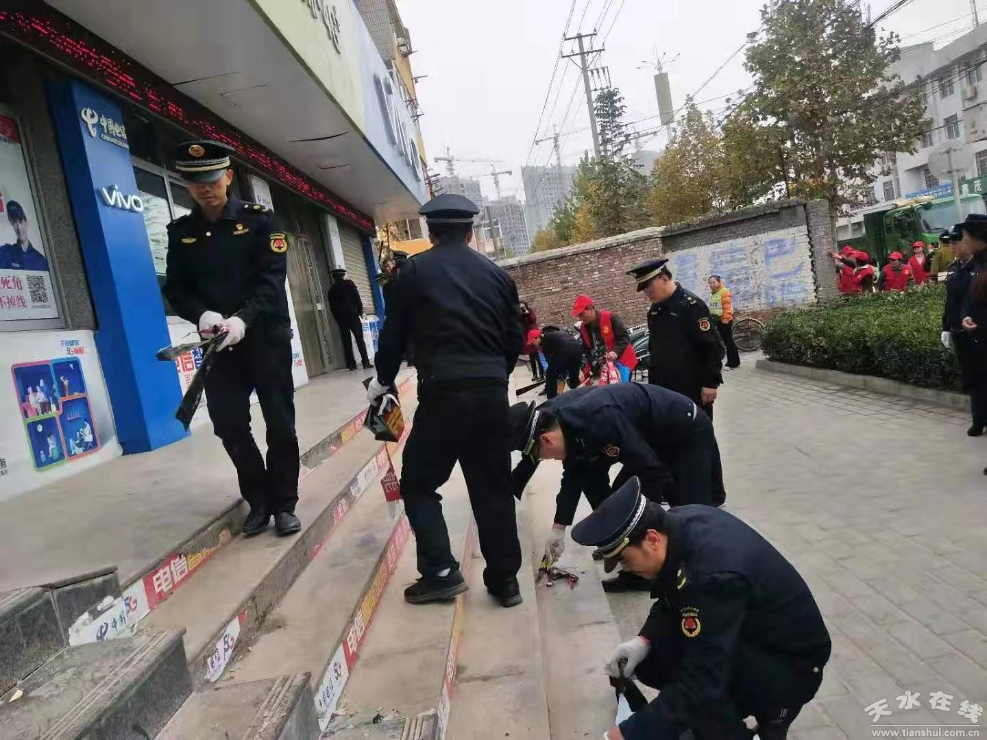 為進(jìn)一步打造整潔、有序的市容環(huán)境,提升城市管理水平和工作效率,連日來,秦州區(qū)執(zhí)法局對照創(chuàng)建文明城市工作每一項指標(biāo)、每一項具體工作,按照測評要求,認(rèn)真、細(xì)致、嚴(yán)格安排部署,全體執(zhí)法人員雷厲風(fēng)行、扎實苦干,夜以繼日、連續(xù)奮戰(zhàn),全力以赴整治我市市容環(huán)境衛(wèi)生存在的“臟、亂、差”現(xiàn)象,集中解決城市管理中的重點(diǎn)難點(diǎn)問題,以“繡花”功夫做實創(chuàng)城細(xì)節(jié),推動我市文明城市創(chuàng)建工作再上新臺階。