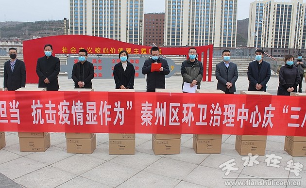 3月8日下午,在第110個(gè)三八婦女節(jié)到來(lái)之際,秦州區(qū)城鄉(xiāng)環(huán)衛(wèi)治理中心舉行“環(huán)衛(wèi)巾幗勇?lián)?dāng) 抗擊疫情顯作為”慶“三八”表彰慰問(wèn)活動(dòng)。