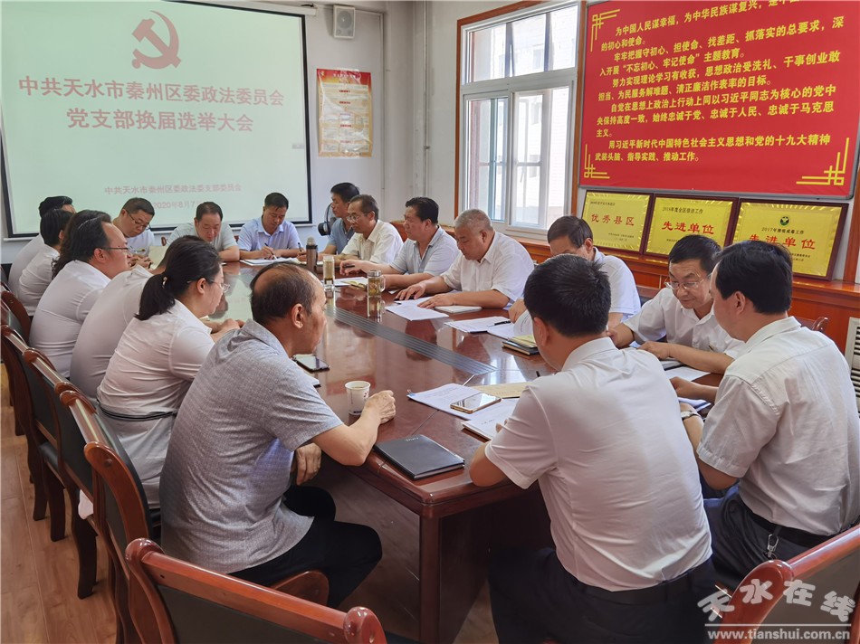 秦州區(qū)融媒體中心8月12日訊 日前,秦州區(qū)政法委黨支部召開換屆選舉黨員大會,區(qū)委常委、政法委書記劉小平主持會議并講話。