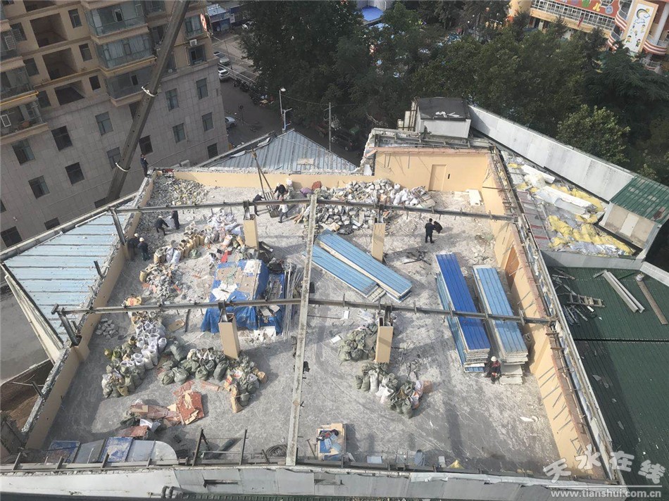 多年來(lái),樂(lè)園路區(qū)域內(nèi)某酒店占用公共空間私自搭建兩間彩鋼房屋,并在四樓樓頂搭建鋼構(gòu)房屋,用作宴會(huì)廳;某公司在未取得任何規(guī)劃建設(shè)手續(xù)的情況下,擴(kuò)建四層鋼結(jié)構(gòu)樓房和設(shè)置外置電梯,嚴(yán)重影響了城市形象,存在極大的安全隱患。由于違建部分均在樓頂或樓群周邊,又有天然氣管道、光電纜線路眾多,高空作業(yè)拆除難度大,歷時(shí)長(zhǎng)。