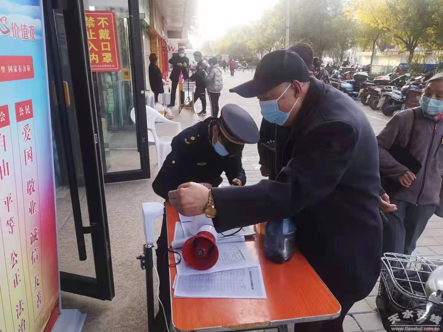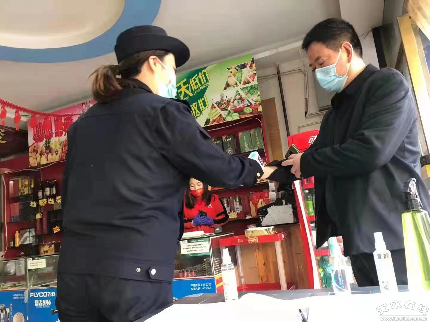 53個超市里,170名執(zhí)法人員第一時間充當(dāng)“守門員”測體溫、查驗碼、設(shè)一米線、分出入道口,為市民購物樹起第一道安全防線。