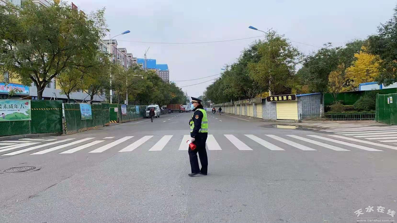 10月27日,秦州城區(qū)猝然按下了暫停鍵,剎那間喧囂熱鬧的市區(qū)安靜空曠了許多,街面上唯有公安、城管的身影逆行而上。他們面對突發(fā)的疫情不畏懼、不退縮,始終沖在一線、服從指揮、聽從安排、不顧自身安危,挺身拼在最前沿,是城市最“美”的身影。