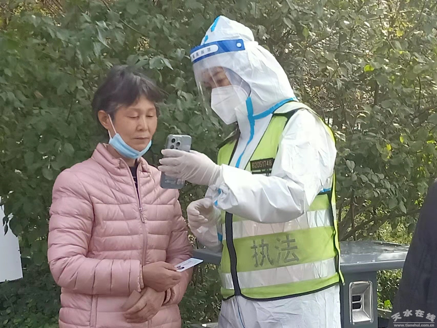 “請保持1米線的間隔距離”、“請?zhí)崆按蜷_健康碼、戴好口罩”;城區(qū)7個辦事處123個核酸檢測采集點上,城管隊員不停的提醒告知大家,維護秩序,每一輪全員檢測,采樣點上,始終都有他們忙碌、疲憊的身影。