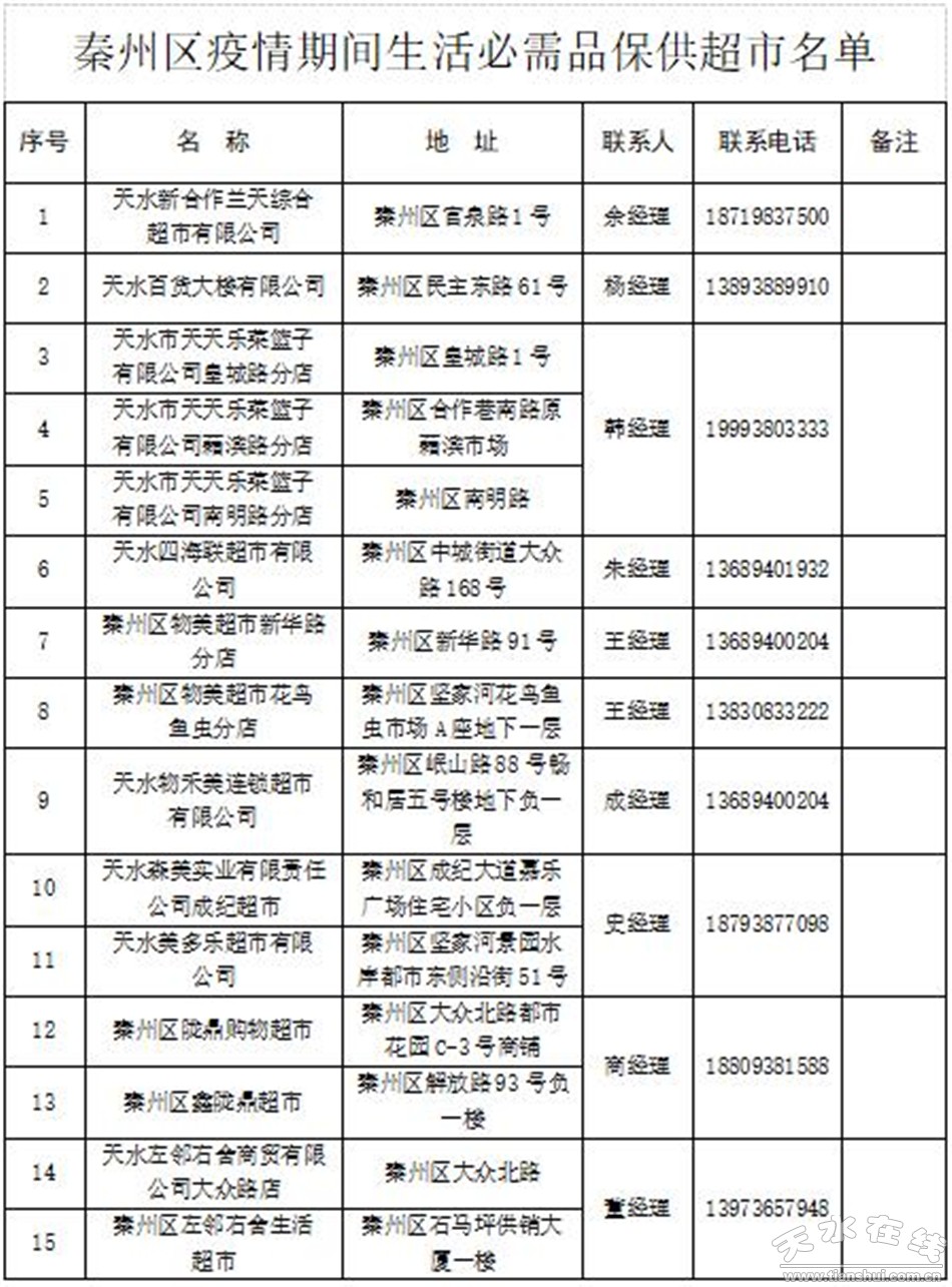 1.秦州區(qū)疫情期間生活必需品保供超市名單
