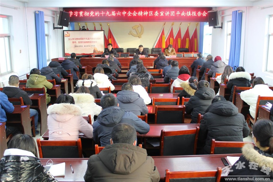 秦州區(qū)融媒體中心1月13日訊 1月12日,秦州區(qū)委常委、政法委書記何煒巍在平南鎮(zhèn)宣講黨的十九屆六中全會(huì)精神。區(qū)政協(xié)副主席郭金霞主持宣講報(bào)告會(huì)。