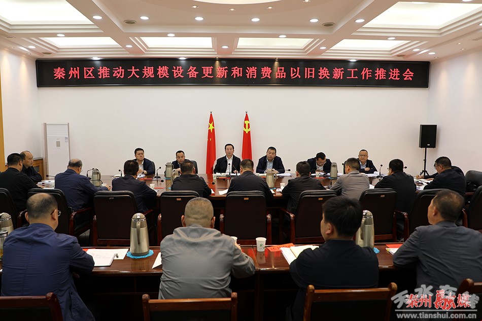 會(huì)議傳達(dá)學(xué)習(xí)了國務(wù)院總理李強(qiáng)在國務(wù)院推動(dòng)大規(guī)模設(shè)備更新和消費(fèi)品以舊換新工作視頻會(huì)議上的講話精神,省委副書記、省長任振鶴在全省大規(guī)模設(shè)備更新和消費(fèi)品以舊換新工作推進(jìn)大會(huì)上的講話精神,聽取了秦州區(qū)推動(dòng)大規(guī)模設(shè)備更新和消費(fèi)品以舊換新工作進(jìn)展情況匯報(bào),就全區(qū)大規(guī)模設(shè)備更新和消費(fèi)品以舊換新工作再安排、再部署。