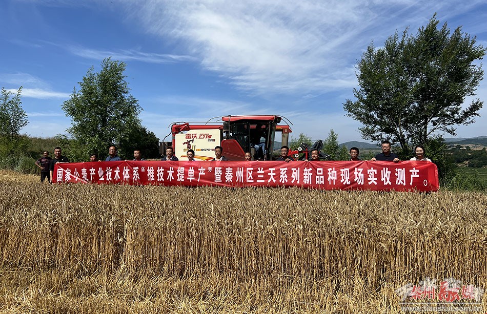 秦州區(qū)融媒體中心7月6日訊 (記者 李鑫 劉武鋒)沃野麥飄香,滿地鋪金黃。近日,由西北農(nóng)林科技大學教授王朝輝、洛陽市農(nóng)林科學院研究員楊子光、 甘肅農(nóng)業(yè)大學教授常磊、市種子站、市農(nóng)業(yè)技術(shù)推廣中心和區(qū)農(nóng)業(yè)農(nóng)村局等單位組成的測產(chǎn)專家組,對秦州區(qū)山地種植的冬小麥品種蘭天36號進行現(xiàn)場實收測產(chǎn)。通過測產(chǎn),蘭天36號冬小麥畝產(chǎn)達571.26公斤。