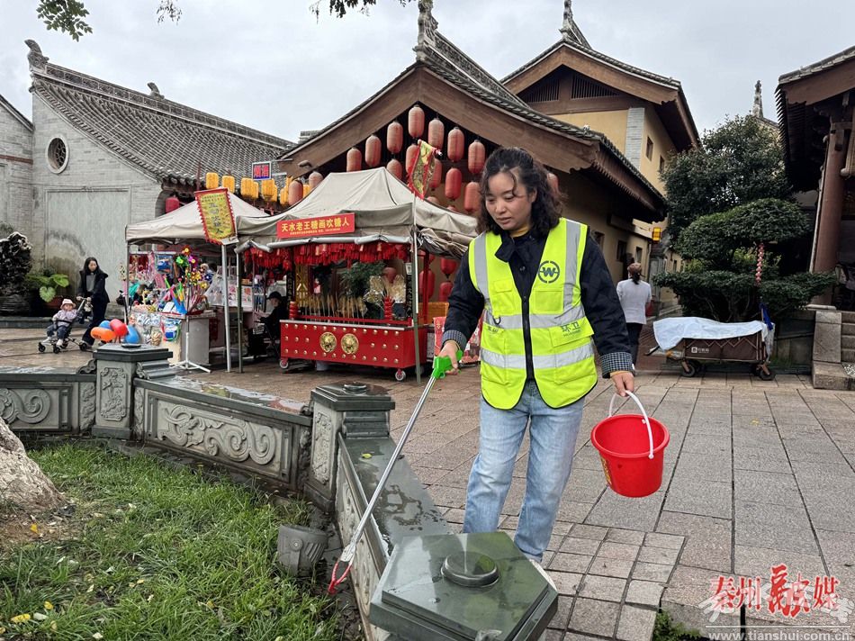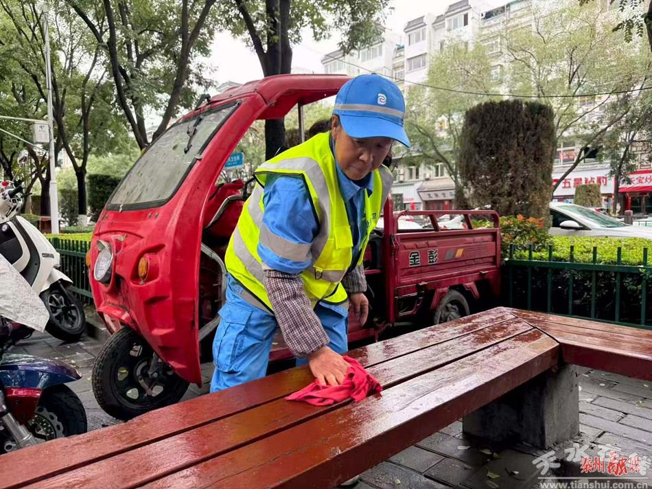 同樣,在崔家巷、天水古城等人流密集區(qū)域,環(huán)衛(wèi)工人對(duì)路邊座椅、花壇、公廁等設(shè)施進(jìn)行精細(xì)化保潔,確保衛(wèi)生清潔“不留死角、不留盲區(qū)”。此外,工作人員還積極開展不文明行為勸導(dǎo),引導(dǎo)市民增強(qiáng)文明意識(shí),提升城市文明形象。