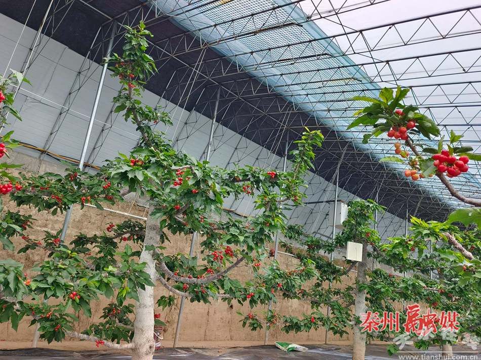“秦州區(qū)玉泉鎮(zhèn)煙鋪村大櫻桃基地現(xiàn)有15個(gè)大棚,其中有1個(gè)藍(lán)莓棚、2個(gè)草莓棚,剩下的12個(gè)都是我們的櫻桃大棚。在設(shè)施大棚里栽種大櫻桃,我們精確水肥管理,也平均它的營(yíng)養(yǎng)物質(zhì),讓它的口感、風(fēng)味達(dá)到最好!碧焖t櫻桃農(nóng)業(yè)發(fā)展有限公司負(fù)責(zé)人王璇琳說(shuō)。