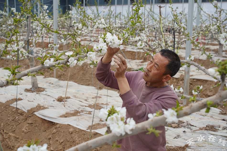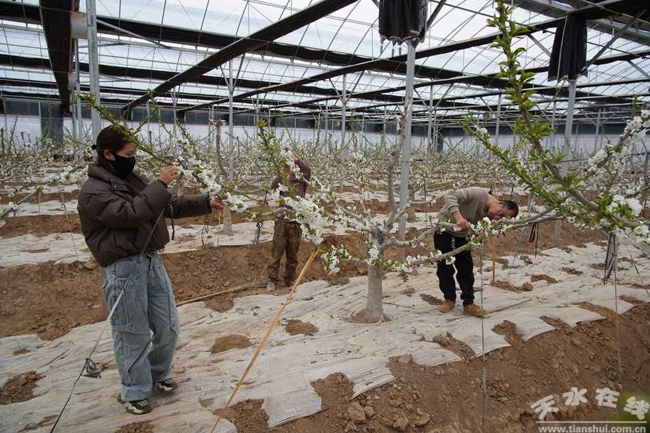 秦州區(qū)牡丹鎮(zhèn)石咀村占地60畝的4個(gè)連棟溫室大棚內(nèi)溫暖如春,1600棵櫻桃樹繁花盛開,果農(nóng)們正穿梭于花間疏花拉枝,用精細(xì)化管護(hù)迎接這場由科技賦能帶來的“春天饋贈”。這些2022年移栽的樹木,借助智能溫控與水肥一體化等精準(zhǔn)管理技術(shù),成功打破了自然生長周期,預(yù)計(jì)將于4月中下旬上市,搶占市場先機(jī),科技賦能下的設(shè)施農(nóng)業(yè),正成為當(dāng)?shù)禺a(chǎn)業(yè)振興的重要支撐。