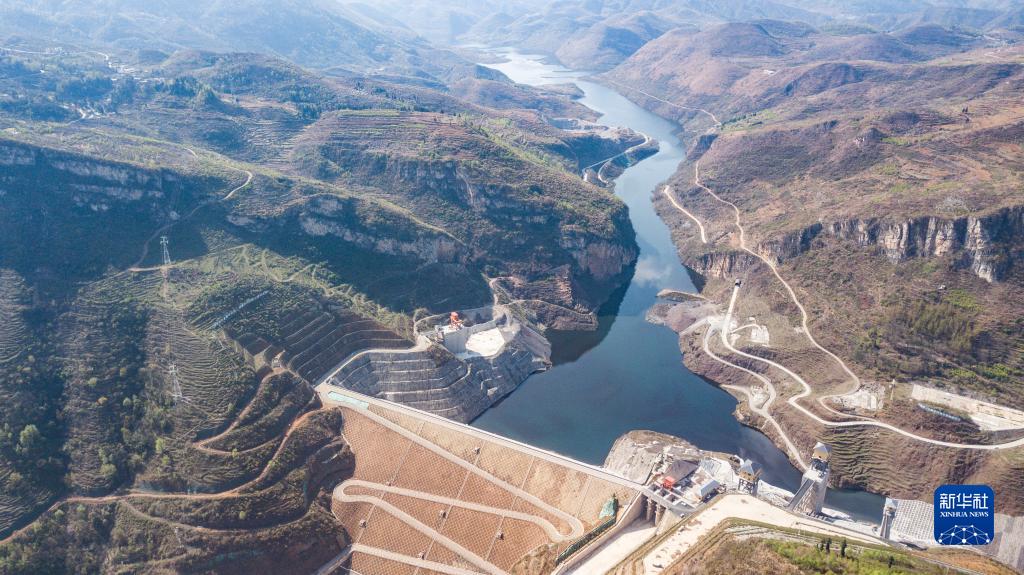 這是在位于烏蒙山區(qū)的貴州省納雍縣六沖河畔拍攝的夾巖水利樞紐工程(2022年3月17日攝,無人機(jī)照片)。新華社記者 陶亮 攝