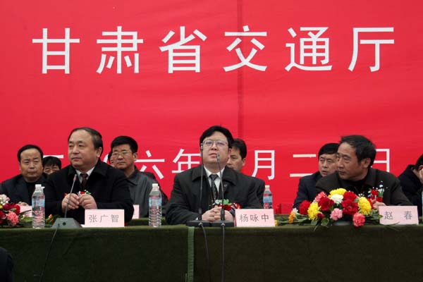 【本報(bào)訊】(記者王軍祥)2月20日,國(guó)道310線牛背至麥積公路改造工程開(kāi)工儀式在麥積區(qū)潘集寨隆重舉行。省交通廳廳長(zhǎng)楊詠中,市委書(shū)記趙春,市委副書(shū)記、市長(zhǎng)張廣智,省交通廳副廳長(zhǎng)辛平,市政協(xié)主席王志榮,市委常委、秘書(shū)長(zhǎng)張懷仁,市人大常委會(huì)副主任杜明富,副市長(zhǎng)任伯年,市政協(xié)副主席白朝德出席開(kāi)工儀式。
