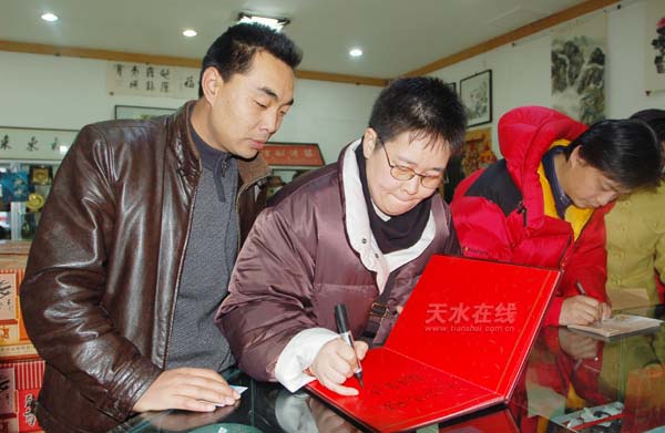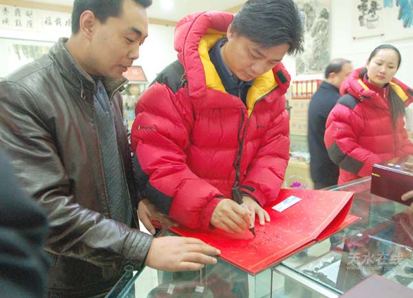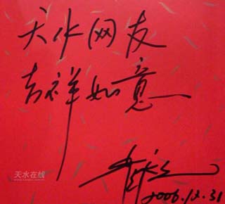 圖為崔永元正在為天水在線題詞