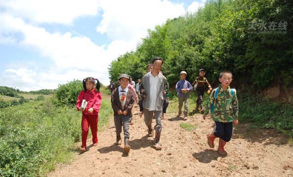 柏建榮背著學(xué)生翻越大山去上學(xué)(資料圖片 天水在線拍攝)