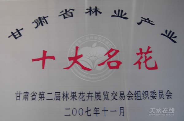 甘肅十大名果出籠 十大名花有主 天水榜上有名(圖)