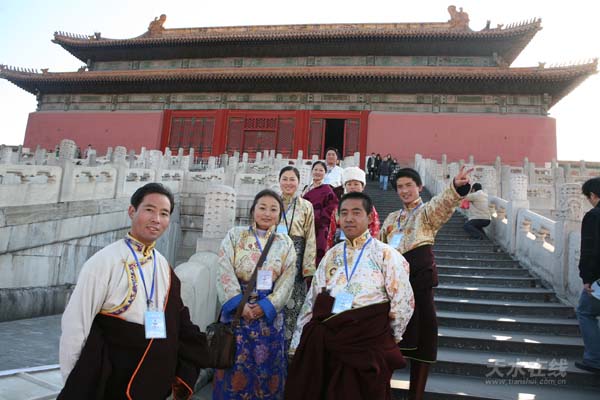 藏族老師在故宮博物院合影。
