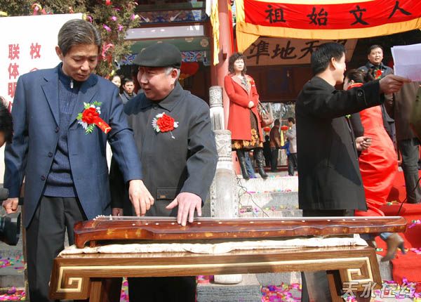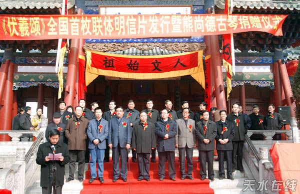 當(dāng)天,伏羲廟除了民間祭祖活動(dòng)外,民間制琴大師熊尚德先生伏羲式”古琴捐贈(zèng)儀式和《伏羲頌》全國(guó)首枚連體明信片首發(fā)式也在天水伏羲廟舉行。