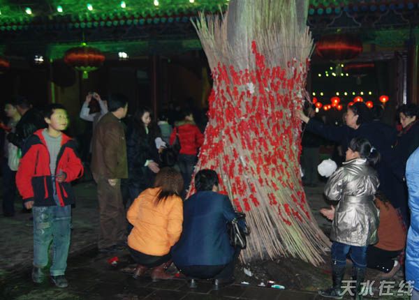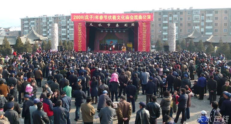 2月21日,農(nóng)歷正月十五,天水市伏羲廟龍旗獵獵,嗩吶陣陣,人潮涌動(dòng),2008(戊子)年民間祭祀伏羲活動(dòng)在天水市伏羲廟如期舉行,數(shù)十萬(wàn)人參加了當(dāng)日的祭祀活動(dòng)。