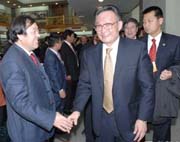 【本報(bào)北京電】3月13日上午,我市黨政代表團(tuán)由市委書(shū)記張景輝,市委副書(shū)記、市紀(jì)委書(shū)記馬湘賢,市委常委、秘書(shū)長(zhǎng)張懷仁,副市長(zhǎng)郭奇若,市長(zhǎng)助理彭鴻嘉帶隊(duì),赴北車(chē)集團(tuán)公司拜訪,就2008年幫扶項(xiàng)目進(jìn)行了商談。