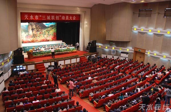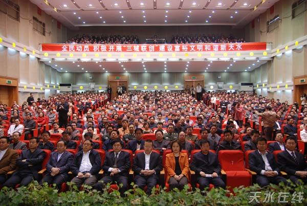 干凈整潔、碧水藍(lán)天——這是我們對(duì)居住環(huán)境的憧憬與追求;古韻悠悠、風(fēng)光旖旎、游人如織——這是天水這座積豐厚歷史文化底蘊(yùn)和優(yōu)美自然風(fēng)光于一體的城市,全體市民心目中旅游業(yè)發(fā)展最理想化的狀態(tài)。而這一切的實(shí)現(xiàn),都有賴于我們今天的努力,F(xiàn)在市委、市政府即將啟動(dòng)的“三城聯(lián)創(chuàng)”(創(chuàng)建國家衛(wèi)生城市、創(chuàng)建國家園林城市、創(chuàng)建中國最佳歷史文化旅游城市)活動(dòng),將這一藍(lán)圖著手繪制。我們相信,在全市上下的共同努力下,一個(gè)和諧美麗的新天水即將向我們走來.