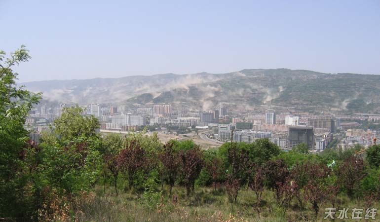 天水震感明顯,樓房搖晃,秦州區(qū)北山泛起滾滾土霧。(攝影:李忠)