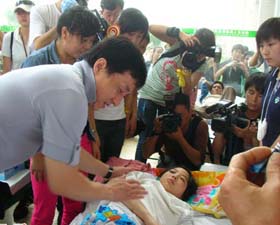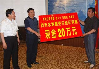 今天,我們?cè)谶@里隆重舉行由市工商聯(lián)、市企業(yè)家協(xié)會(huì)、市光彩事業(yè)促進(jìn)會(huì)發(fā)起的全市企業(yè)界“抗震救災(zāi)獻(xiàn)愛心”募捐活動(dòng)。我們高興地看到,一批全市有作為的企業(yè)家,在自身遭受災(zāi)害的情況下,勇敢地承擔(dān)起神圣的社會(huì)責(zé)任,積極行動(dòng),挺身而出,通過慷慨解囊、捐資捐物的義舉,支援災(zāi)區(qū)人民的生產(chǎn)生活,表達(dá)對(duì)災(zāi)區(qū)人民的關(guān)愛和真情。對(duì)此,我們十分感動(dòng),也十分敬佩。在此,我代表市委、市政府,代表全市人民,代表正在災(zāi)難中等待援助的受災(zāi)群眾,向你們表示最衷心的感謝!