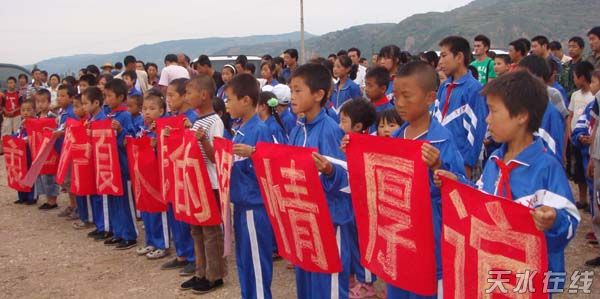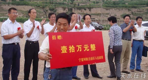 隨后,在秦州區(qū)太京鎮(zhèn)舉行了寧夏回族自治區(qū)向師靳小學(xué)捐款儀式。寧夏回族自治區(qū)政府副主席李銳、天水市副市長楊維俊分別講話;寧夏自治區(qū)建設(shè)廳廳長劉慧芳代表寧夏自治區(qū)黨委、政府為師靳小學(xué)災(zāi)后重建捐款10萬元;市委常委、秦州區(qū)委書記張健主持了捐款儀式。