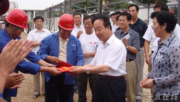 李銳一行先后到張家川縣第四中學(xué)、秦安縣隴城中學(xué)和天水市第四中學(xué)察看了過渡安置房建設(shè)工作,為施工單位和一線施工人員送上了慰問金和慰問品,帶去了寧夏自治區(qū)黨委、政府的問候,叮囑大家保重身體,抓緊施工,確保質(zhì)量,爭取援建的所有過渡安置房在8月10日前全部移交地方使用。