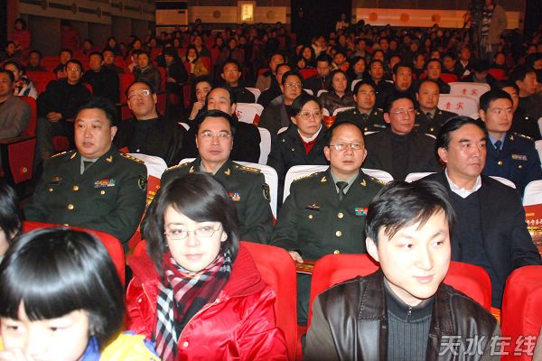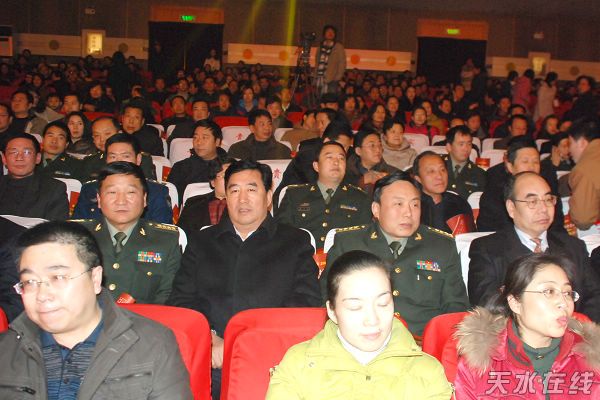 天水市領(lǐng)導(dǎo)張景輝、馮沙駝、李美華、張懷仁、鄭黎、韓一兵、申積來、馬銳、黃郁、郭奇若、趙衛(wèi)東、王欽錫、安志宏以及駐軍領(lǐng)導(dǎo)、市直機(jī)關(guān)、民主黨派、社會(huì)各界人士等900多人觀看了新年音樂晚會(huì)。