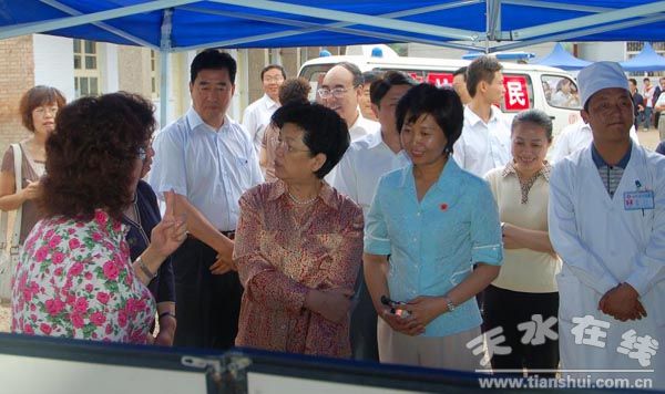 【天水日?qǐng)?bào)訊】 (記者 武軍) 7月15日,全國(guó)人大常委會(huì)副委員長(zhǎng)、全國(guó)婦聯(lián)主席陳至立來(lái)我市考察“母親健康快車(chē)”項(xiàng)目實(shí)施情況。全國(guó)婦聯(lián)副主席孟曉駟隨同視察,省委副書(shū)記劉偉平、省人大常委會(huì)副主任崔玉琴、副省長(zhǎng)張曉蘭,市領(lǐng)導(dǎo)張景輝、李文卿、張應(yīng)華、蔣曉強(qiáng)、任伯年陪同視察。