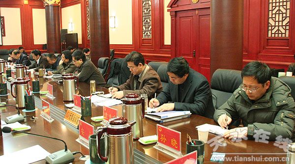 會議研究了提交市五屆人大五次會議審議的《政府工作報告》(討論稿)、《關(guān)于天水市2009年國民經(jīng)濟(jì)和社會發(fā)展計劃執(zhí)行情況及2010年計劃草案的報告》、《關(guān)于天水市2009年財政預(yù)算執(zhí)行情況和2010年全市及市級財政預(yù)算草案的報告》,審議了《天水市廉租住房共有產(chǎn)權(quán)管理實施意見》和《關(guān)于進(jìn)一步加強(qiáng)未成年人保護(hù)工作的實施意見》,研究了工業(yè)強(qiáng)市有關(guān)事宜。